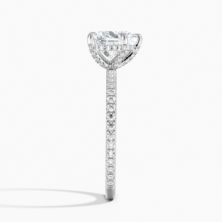 Our stunning Hailey Setting features an ethically-sourced centre stone with a hidden halo set in lush 18K White Gold, 18K Yellow Gold, 18K Rose Gold or Platinum pave band.